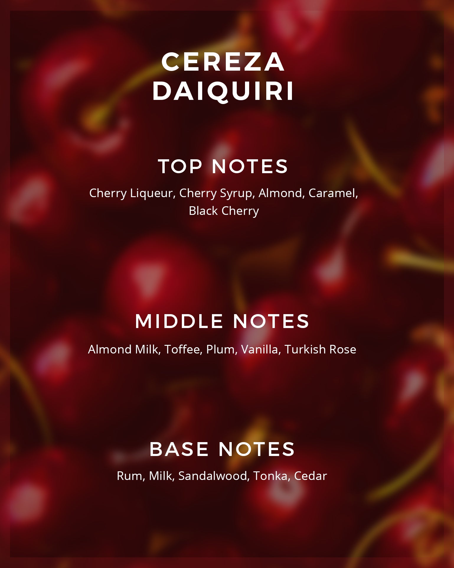 The result? A most gourmand cherry fragrance, sweet, creamy, and unapologetically luxurious.