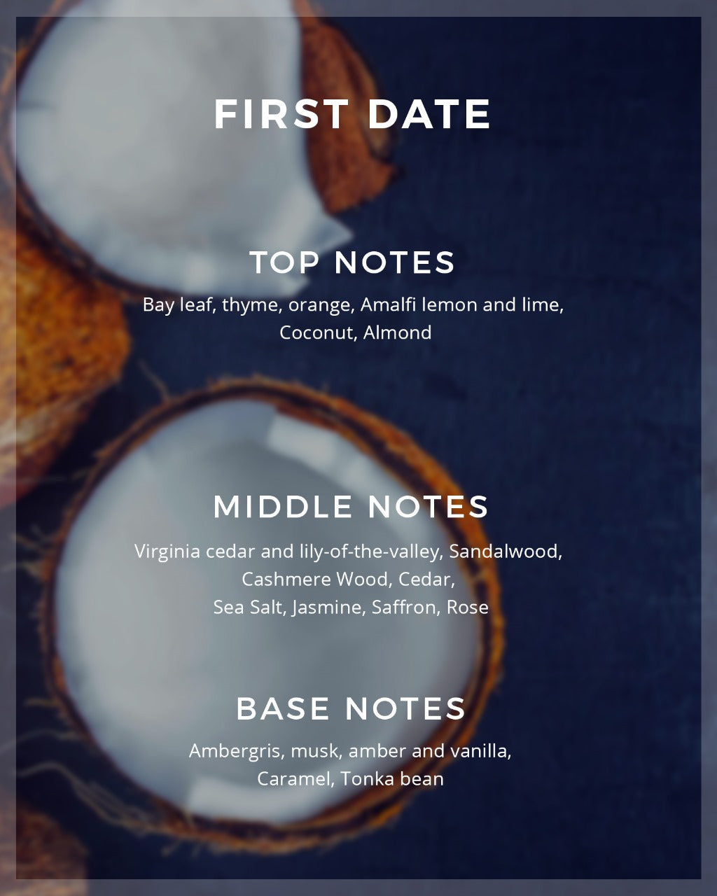 Bay leaf, thyme, orange, Amalfi lemon and lime; Coconut, Almond