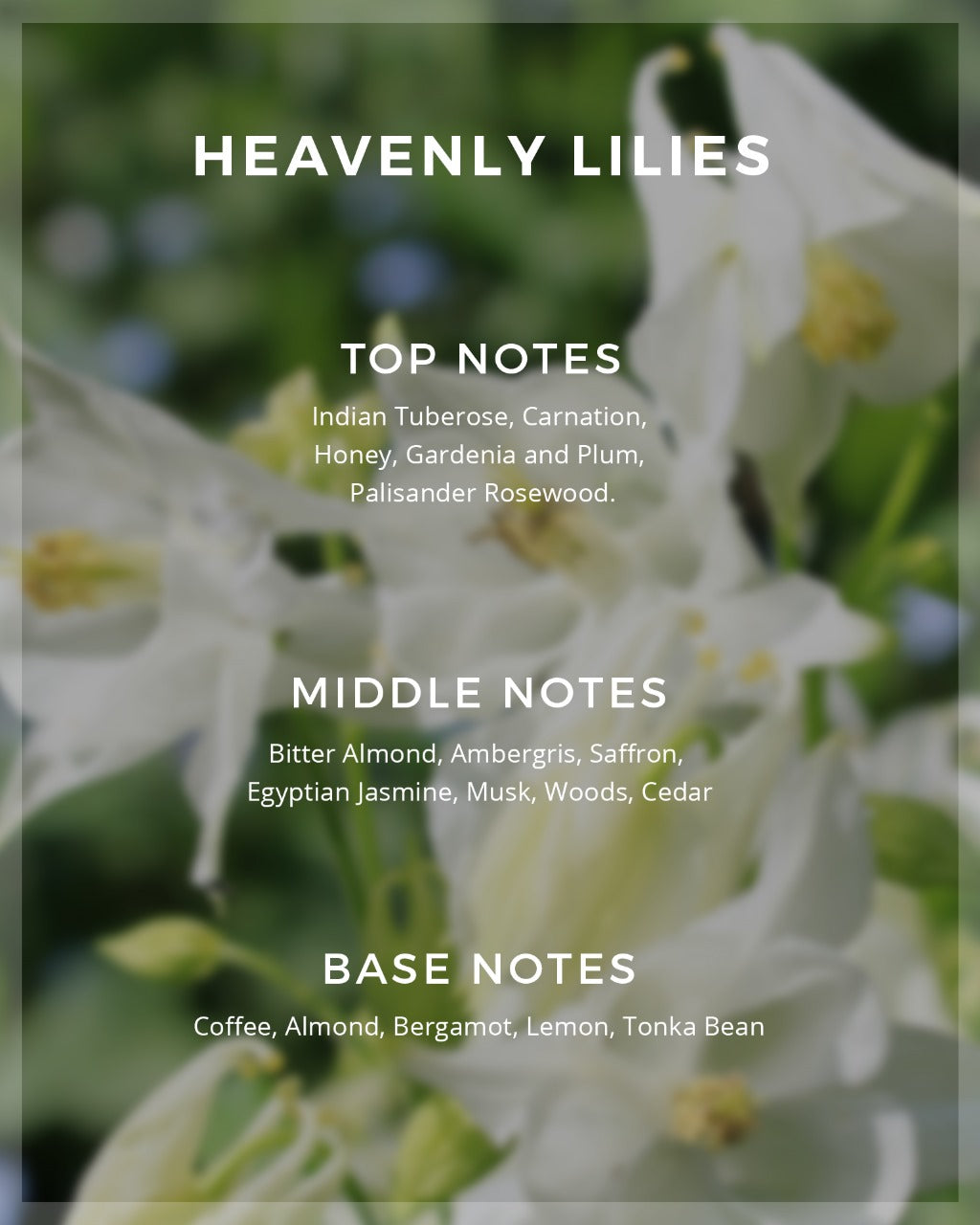 Don't settle for just any perfume or cologne. Choose Heavenly Lilies and discover what it means to be both sensual and joyful at the same time.